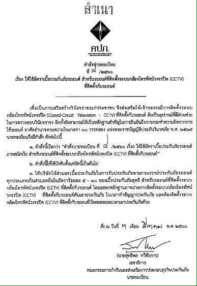 ทั้งนี้ตามประกาศใหม่ล่าสุดจาก คปภ. ที่ออกมาเมื่อวันที  3  มีนาคม   พ.ศ.  2560   ได้ กำหนดระเบียบใหม่ที่ใช้ชื่อว่า ให้ใช้อัตราดอกเบี้ยประกันภัยรถยนต์ภาคสมัครใจ สำหรับรถยนต์ที่ติดตั้งระบบกล้องโทรทัศน์วงจรปิด
