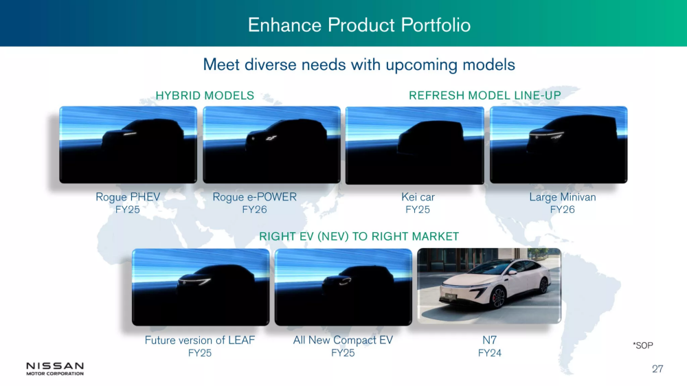 นอกจากการประกาศเตรียมเลย์ออฟพนักงานทั่วโลกชุดใหญ่เพื่อประหยัดเงินกว่า 87,340 ล้านบาท สำหรับการดำเนินงานและบริหารธุรกิจต่อไป ในงานแถลงข่าวรอบปิดปีงบประมาณ 2024 ทาง Nissan ยังระบุเพิ่มเติมอีกว่าพวกเขามีแผนจะเปิดตัวรถยนต์โมเดลใหม่ๆในตลาดโลกที่หมด 6 รุ่นด้วยกันในระหว่างปีงบประมาณ 2025-2026
