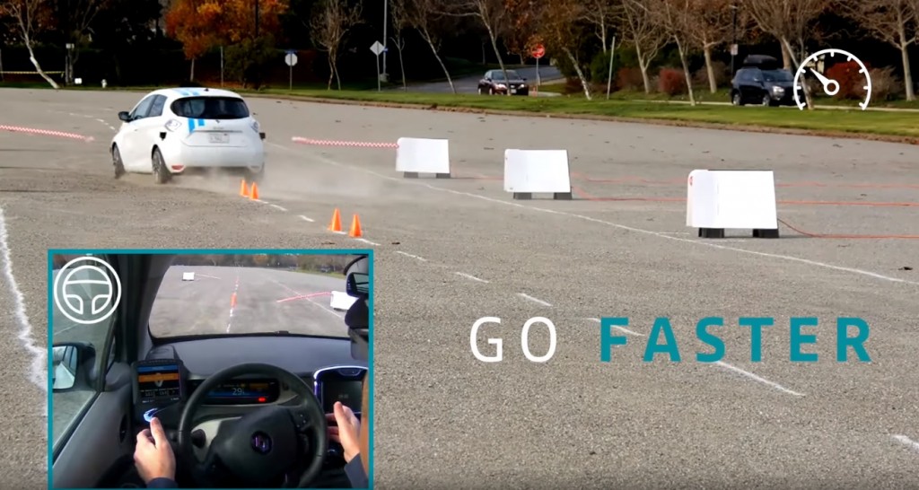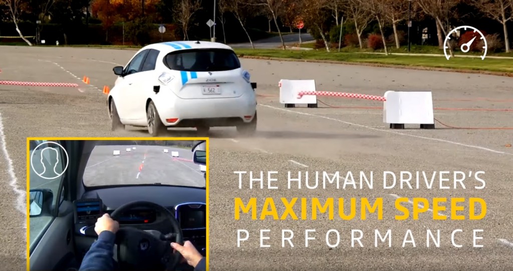 สำหรับรถตัวอย่างที่ติดตั้งระบบหักหลบอัตโนมัติรุ่นต้นแบบอยู่ใน Renault Zoe EV ซึ่งในวีดิโอจะเห็นว่ามีการให้นักขับมืออาชีพขับบนเส้นทางพร้อมกับหักหลบสิ่งกีดขวาง จากนั้นจะเปิดระบบขับขี่อัตโนมััติให้รถวิ่งไปตามทาง ผลลัพธ์ที่ได้คือเมื่อมีสิ่งกีดขวางรถสามารถหลบหลีกได้เหมือนกับคนมากฝีมือไม่มีผิด และในอนาคตผู้พัฒนาหวังว่ามันจะทำงานได้ที่ความเร็วสูงและมีความนุ่มนวลมากกว่านี้