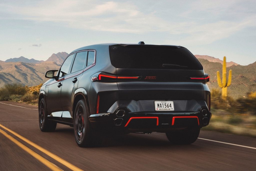 โดดเด่นยิ่งขึ้นกับกระจกหลัง ไฟท้ายทรงเรียว LED สีดำเงา มีช่องระบายอากาศติดมาด้วยในชุดกันชนหลังใส่ลิ้นสปอยเลอร์หลังขนาดใหญ่ฝังท่อไอเสียแนวตั้ง 4 ท่อ สองฝั่งกรอบสีทองสองฝั่ง ตราโลโก้ BMW ฝังไว้ที่กระจกรถนับเป็นครั้งแรกของค่ายที่ติดตราโลโก้ในลักษณะนี้ ส่วนตำแหน่งเดิมตราโลโก้ฟ้าขาวกลายเป็นที่ติดโลโก้ XM ขอบสีแดง