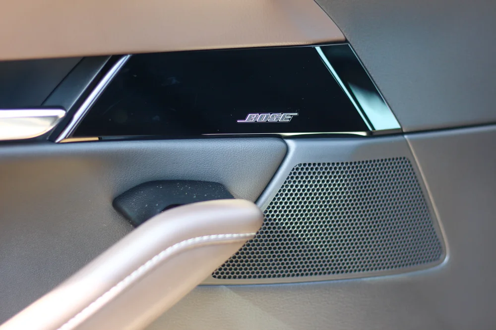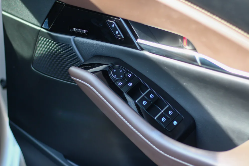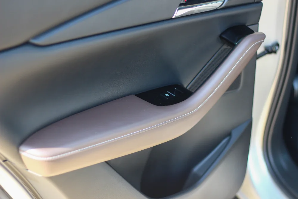 นอกจากนี้ชิ้นส่วนงานตกแต่งภายในส่วนใหญ่ ที่ลำตัวท่อนบนของเรามีโอกาสจะไปสัมผัสบ่อยครั้งที่สุด ยังเน้นการใช้ชิ้นงานหุ้มหนังสังเคราะห์เกือบทั้งหมด ไม่ว่าจะเป็นแผงคอนโซล, แผงประตู, พวงมาลัย, หัวเกียร์, เบาะนั่ง ก่อนที่จะตัดโทนในห้องโดยสารด้วยชิ้นส่วนสีเงินโครเมียมแซมตามจุดต่างๆ เช่น มือเปิดประตู, มือเปิดกล่องเก็บของตรงกลางเบาะนั่งคู่หน้า, และกรอบปุ่ม Push Start เป็นต้น