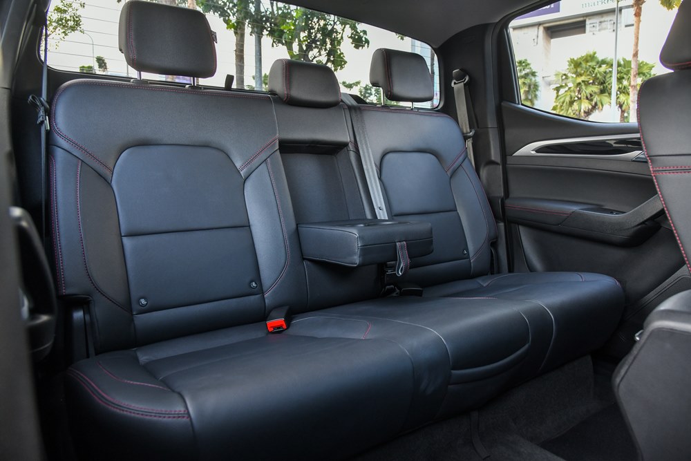 ที่ผ่านมาผมไม่เคยกระบะออกแบบช่วงหลังใหญ่นัก จะมี เพียง Ford เท่านั้นแหละที่รู้สึกว่าใหญ่ ส่วนพี่มิตซูบิชิเขาตอบโจทย์เรื่องนั่งสบายมีชื่อเสียงมายาวนาน ก่อนขึ้นมาผมจัดแจงปรับเบาะนั่งที่ตัวเองนั่งได้สบายไว้ พอขึ้นมานั่งตอนหลังอัศจรรย์ใจมา ที่นั่งตอนหลัง MG Extender กว้างมาก อาจจะเรียกว่ากว้างที่สุด ตั้งแต่นั่งกระบะ 4 ประตูมา ช่วงเหนือหัวเหลือเพียบ, ช่วงวางขาเหลือสบายๆ พอจะนั่งขัดสมาธิได้เลย ที่ประตูที่เท้าอยู่ในตำแหน่งพอดี กระจกข้างบนหลัง ก็เปิดได้สุด แถมบานใหญ่ ไม่ให้รู้สึกคับแคบ เวลาโดยสาร