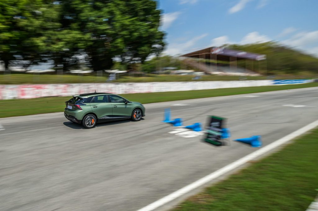 ช่วงระหว่างในสนาม จะมีด่าน เปลี่ยนเลน ให้ลองเล่น ในระหว่าง ทางโค้ง 100R ลองคิดว่า เมื่อคุณต้องเปลี่ยนเลน ในระหว่างกำลังโค้ง มันคงไม่ง่าย ถ้ารถไม่ดีจริง ทว่า MG 4 X- Power กลับทำให้เรามั่นใจ ในเรื่องการตอบสนอง