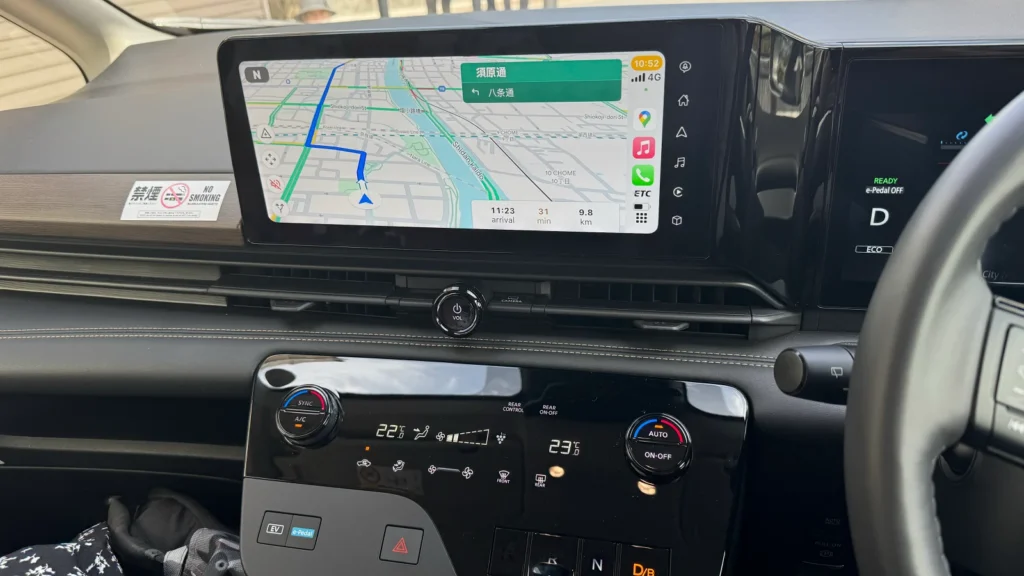 คอนโซลกลางถูกออกแบบใหม่ ให้หยิบจับใช้งาน ของจำเป็นง่าย ประกอบด้วย เกียร์ปุ่ม , โหมดขับไฟฟ้า และ E-pedal ที่เหลือ คือฟังชั่นระบบปรับอากาศ ให้แอร์แยกปรับอิสระ ซ้าย-ขวา ใช้งานค่อนข้างง่ายและสะดวกพอสมควร