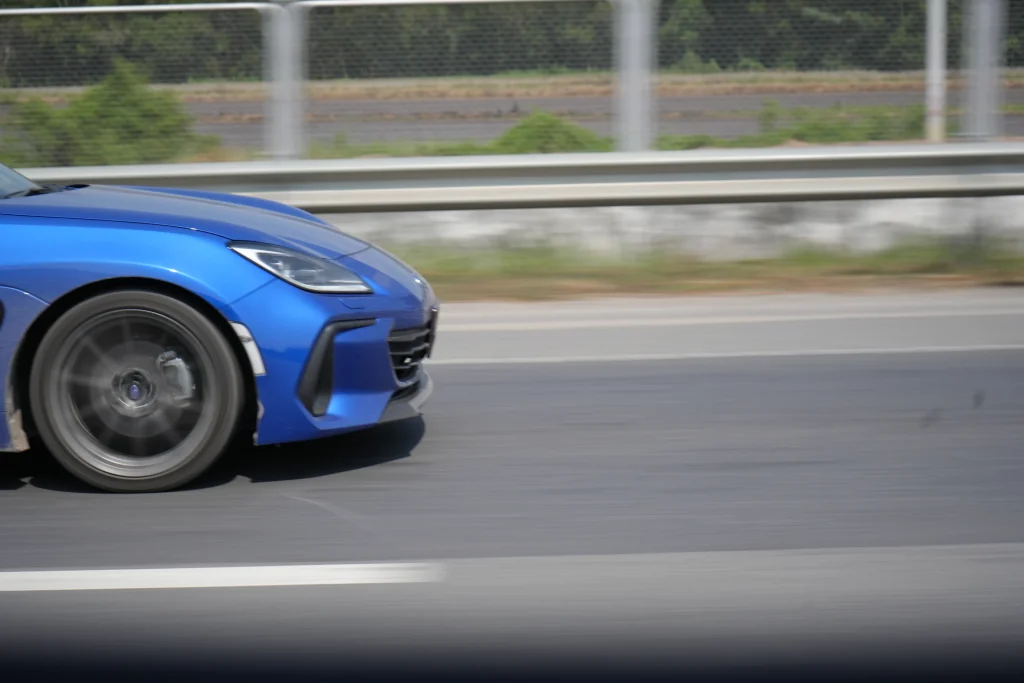 การกระชากพวงมาลัย เปลี่ยนเลน ในความเร็ว 130-140 หรือ แม้แต่ความเร็วสูงกว่านั้น ให้ความรู้สึกที่ค่อนข้างมั่นใจ ผิดกับตัวเดิม ที่อาจจะมีจังหวะยวบอยู่นิดๆ จนถ้าวัดกันที่ฝีมือคนขับ เวลาเจอเพื่อนมาซิ่งซ่าด้วยกัน อาจะพบว่า BRZ ยากที่จะเคี้ยว ถ้าเจอคนขับฝีมือดี มุดเก่ง ท่ามกลางการจราจรที่หนาแน่น