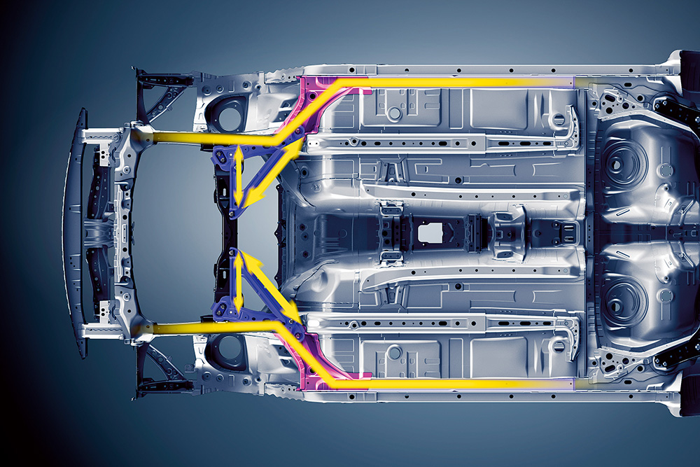 นั่นทำให้โครงสร้าง ของ Subaru BRZ ใหม่ สามารถทนการดัดงอทางด้านหน้า +60% และ ทนต่อการบิดตัวด้านท้ายรถ +50% เมื่อเปรียบเทียบกับรุ่นเดิม