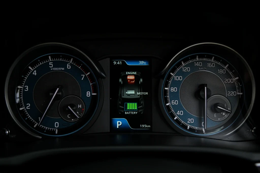 และท้ายสุดคือเรื่องของหน้าจอต่างๆ ทั้งหน้าจอมาตรวัดแบบเข็มกวาดในส่วนของวัดรอบ กับความเร็ว ที่ถูกปรับสีพื้นหลังจากสีส้มแดง เป็นสีน้ำเงินอมเขียว กับปรับธีมสีจอ MID ตรงกลางให้เป็นสีฟ้า เพื่อความเข้ากันกับขุมกำลังที่ถูกปรับมาเป็นระบบ Hybrid และแน่นอนว่าตัวจอกลางที่ว่านี้ ก็ได้มีการเพิ่มฟังก์ชันแสดงผลสถานะการทำงานของระบบขุมกำลังเข้ามาด้วย