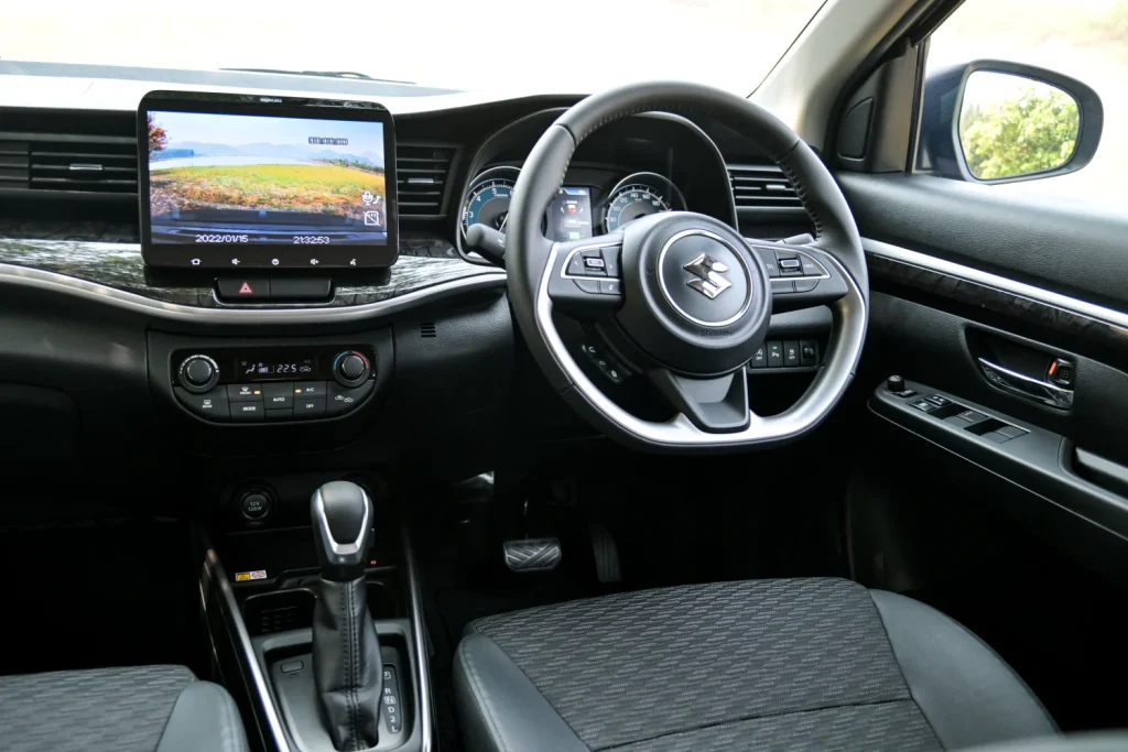 ขณะเดียวกันชุดคอนโซลหน้า และแผงข้างประตูต่างๆก็ยังคงใช้งานออกแบบเดิม ที่เปลี่ยนไปจริงๆ ก็จะมีแค่แผ่นวัสดุตกแต่งที่ก่อนหน้านี้เคยทำให้เป็นลายผ้าคาร์บอน ตอนนี้ก็เปลี่ยนเป็นลายไม้แบบเดียวกับที่อยู่ใน Suzuki Ertiga แต่เปลี่ยนจากลายไม้สีน้ำตาล เป็นลายไม้สีดำ แต่ที่พวงมาลัย ยังคงตกแต่งด้วยวัสดุสีเงินดังเดิม ไม่ได้เปลี่ยนเป็นลายไม้แต่อย่างใด